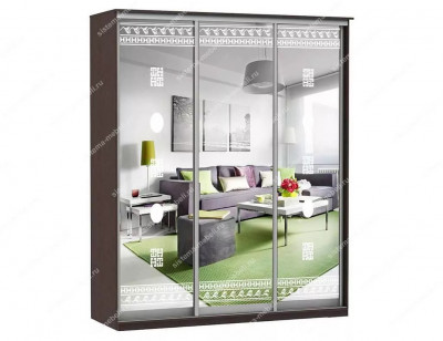 Шкаф купе Модерн 1776х600 3-х дверный 3-х секционный зеркальный с пескоструем №2 венге