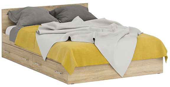 Наименование производителя | Стандарт Кровать с ящиками 1400, цвет дуб сонома, ШхГхВ 143,5х203,5х70 см., сп.м. 1400х2000 мм., без матраса, основание есть |